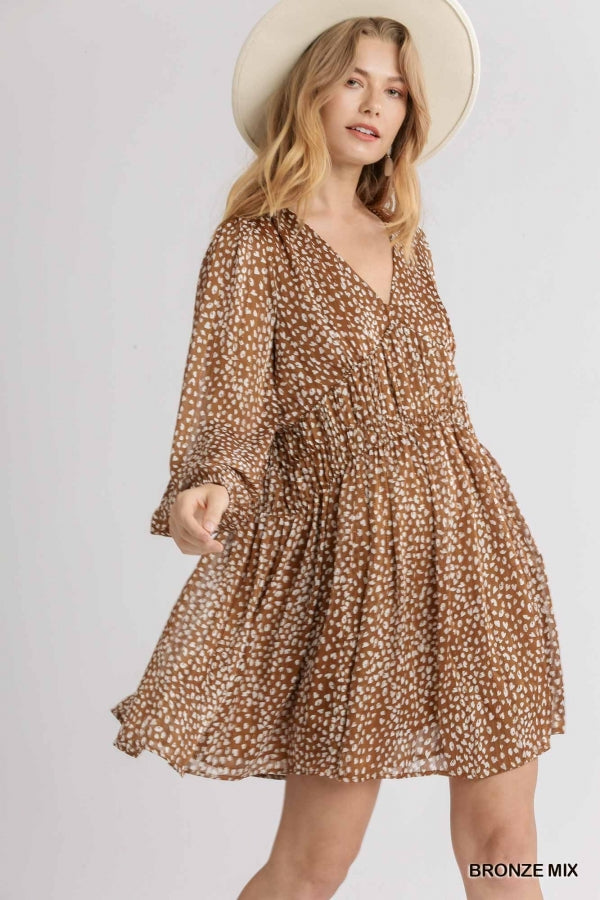 Metallic Animal Print Babydoll - Bronze Mix